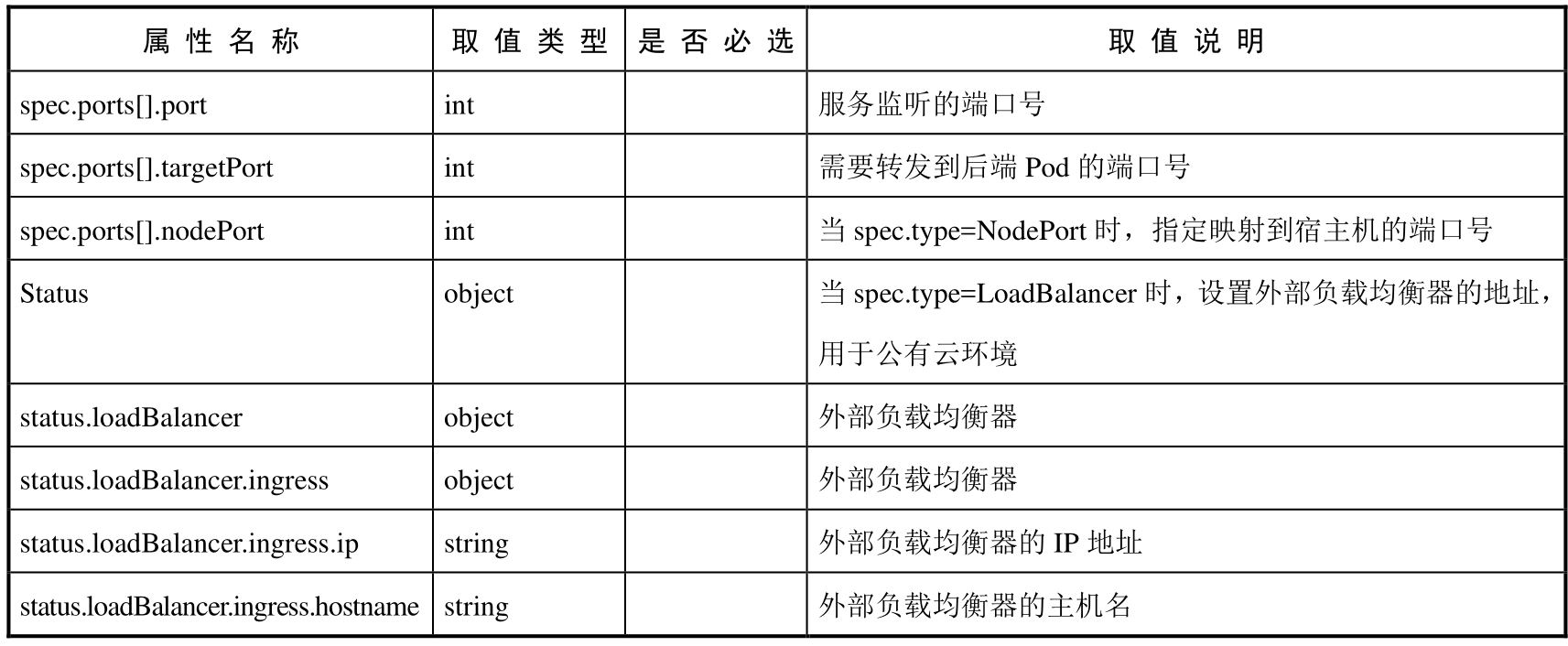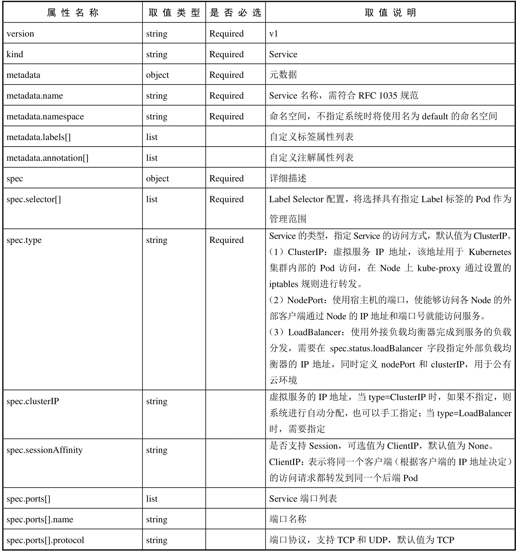 表4.1 对Service的定义文件模板的各属性的说明