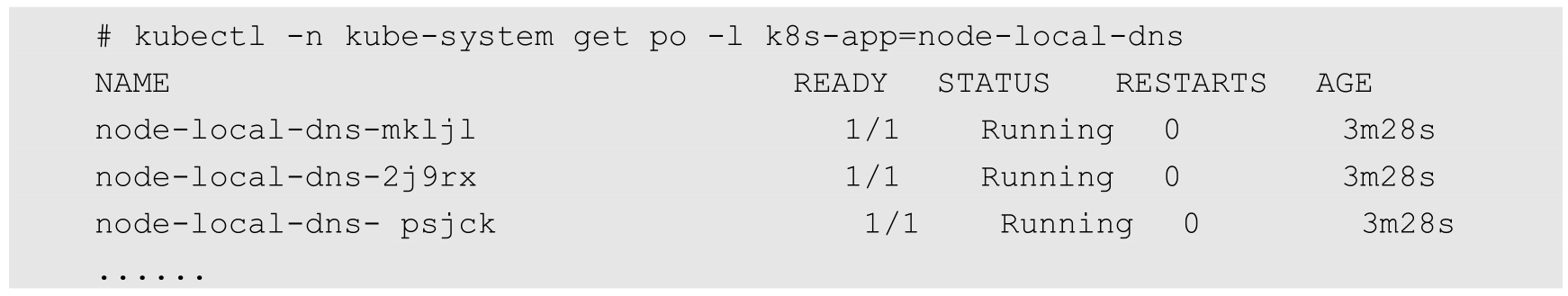 确认在每个Node上都运行了一个node-local-dns Pod: