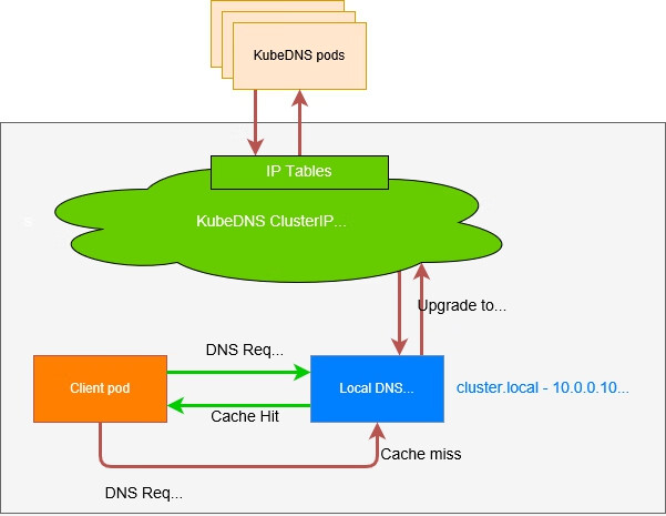◎ 本地缓存到集群DNS服务的连接协议可以升级为TCP。TCP conntrack条目将在连接关闭时被删除;默认使用UDP时,conntrack条目只能等到超时时间过后才被删除,操作系统的默认超时时间(nf_conntrack_udp_timeout)为30s。