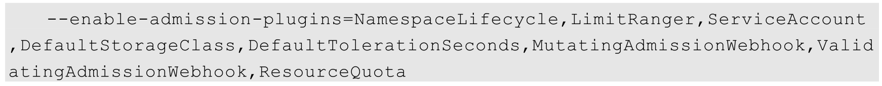 在API Server上设置参数即可定制我们需要的准入控制链,如果启用了多种准入控制选项,则建议这样设置:在Kubernetes 1.9及之前的版本中使用的参数是--admission-control,其中的内容是顺序相关的;在Kubernetes 1.10及之后的版本中使用的参数是--enable-admission-plugins,并且与顺序无关。