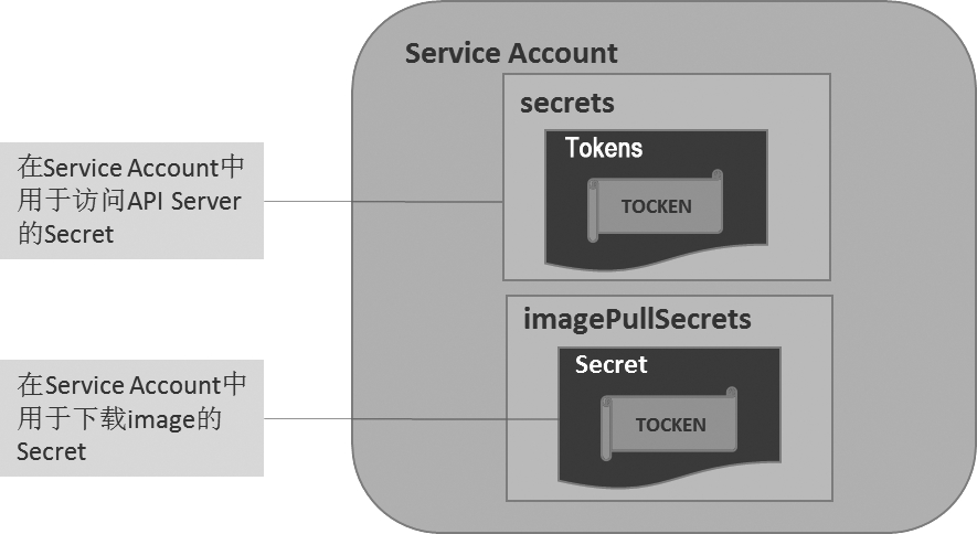 如图6.3所示,一个Service Account可以包括多个Secret对象。
