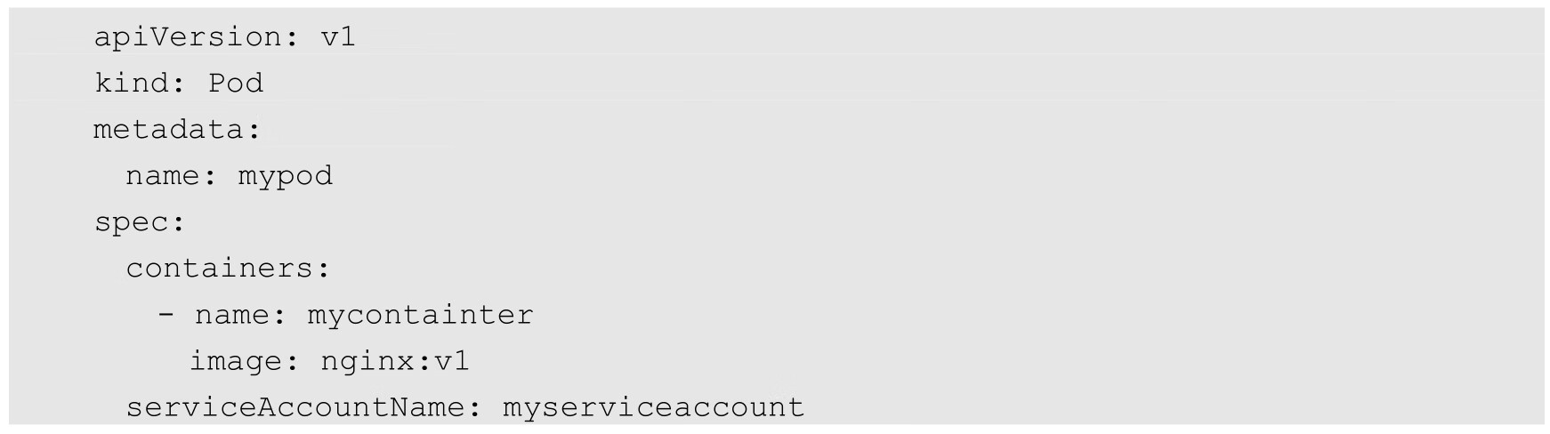 如果一个Pod在定义时没有指定spec.serviceAccountName属性,则系统会自动将其赋值为default,即大家都使用同一个命名空间中的默认Service Account。如果某个Pod需要使用非default的Service Account,则需要在定义时指定: