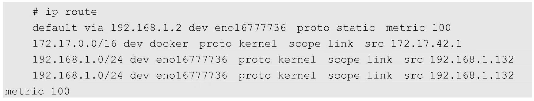 另外,我们可以看到刚刚启动Docker后的Route表,它和启动前没有什么不同: