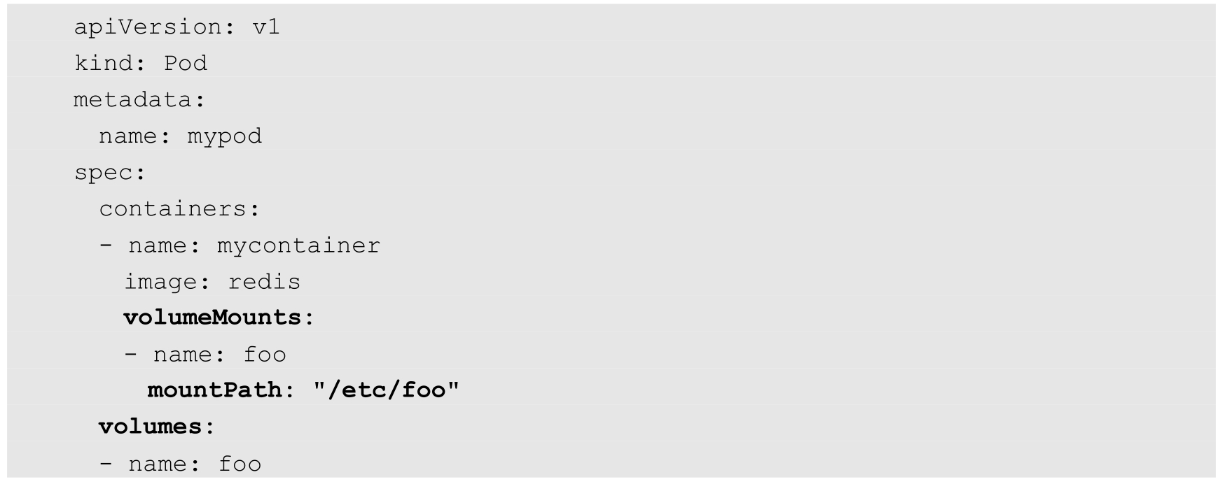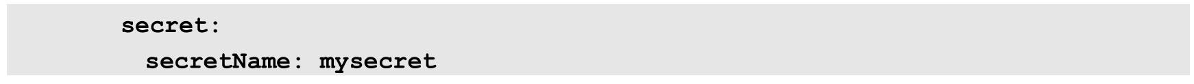与ConfigMap的用法类似,在Pod的YAML配置中可以将Secret设置为一个Volume,然后在容器内通过volumeMounts将Secret类型的Volume挂载到/etc/foo目录下: