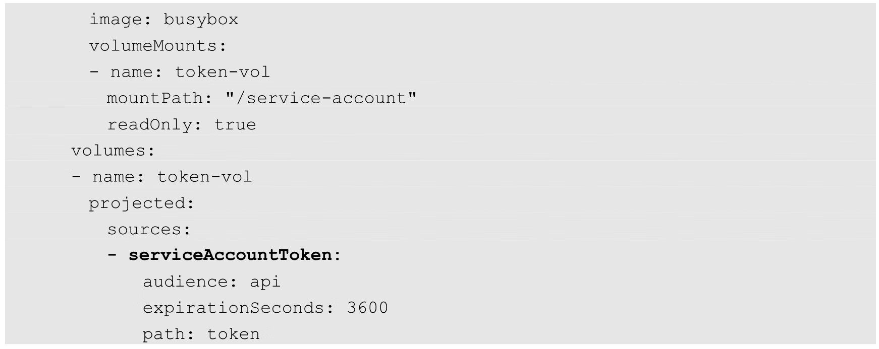 下面是一个使用Projected Volume挂载ServiceAccountToken的示例: