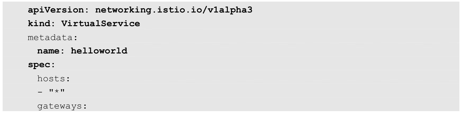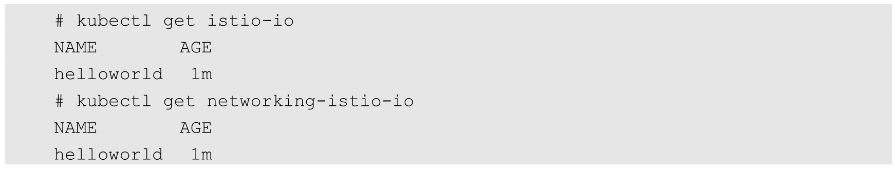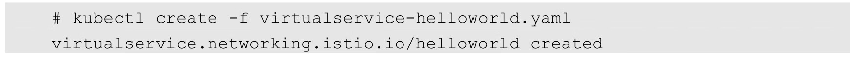 基于CRD的定义,用户可以像创建Kubernetes系统内置的资源对象(如Pod)一样创建CRD资源对象。在下面的例子中,virtualservice-helloworld.yaml定义了一个类型为VirtualService的资源对象: