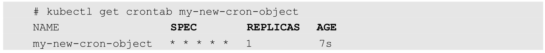 运行kubectl get命令查看CronTab资源对象,会显示出这3个自定义列: