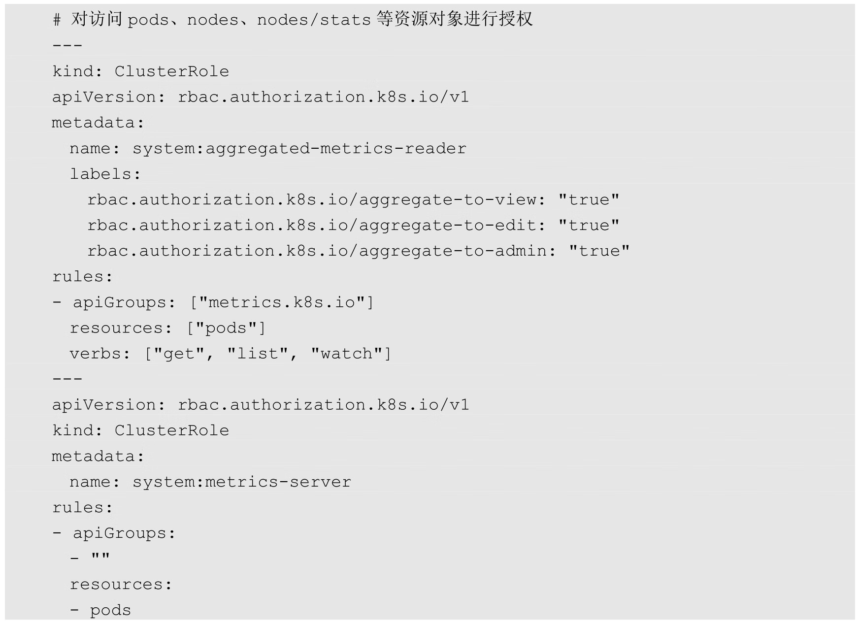 最后,定义APIService资源,主要设置自定义API的组(group)、版本号(version)及对应的服务(metrics-server.kube-system):
