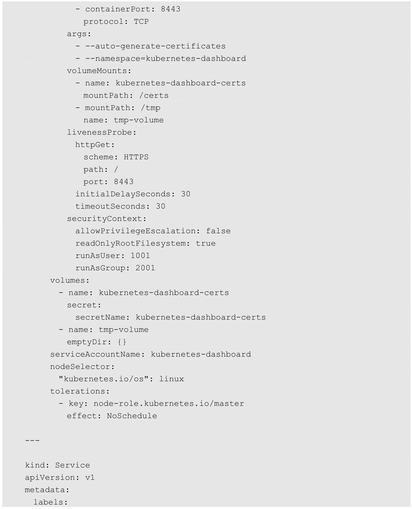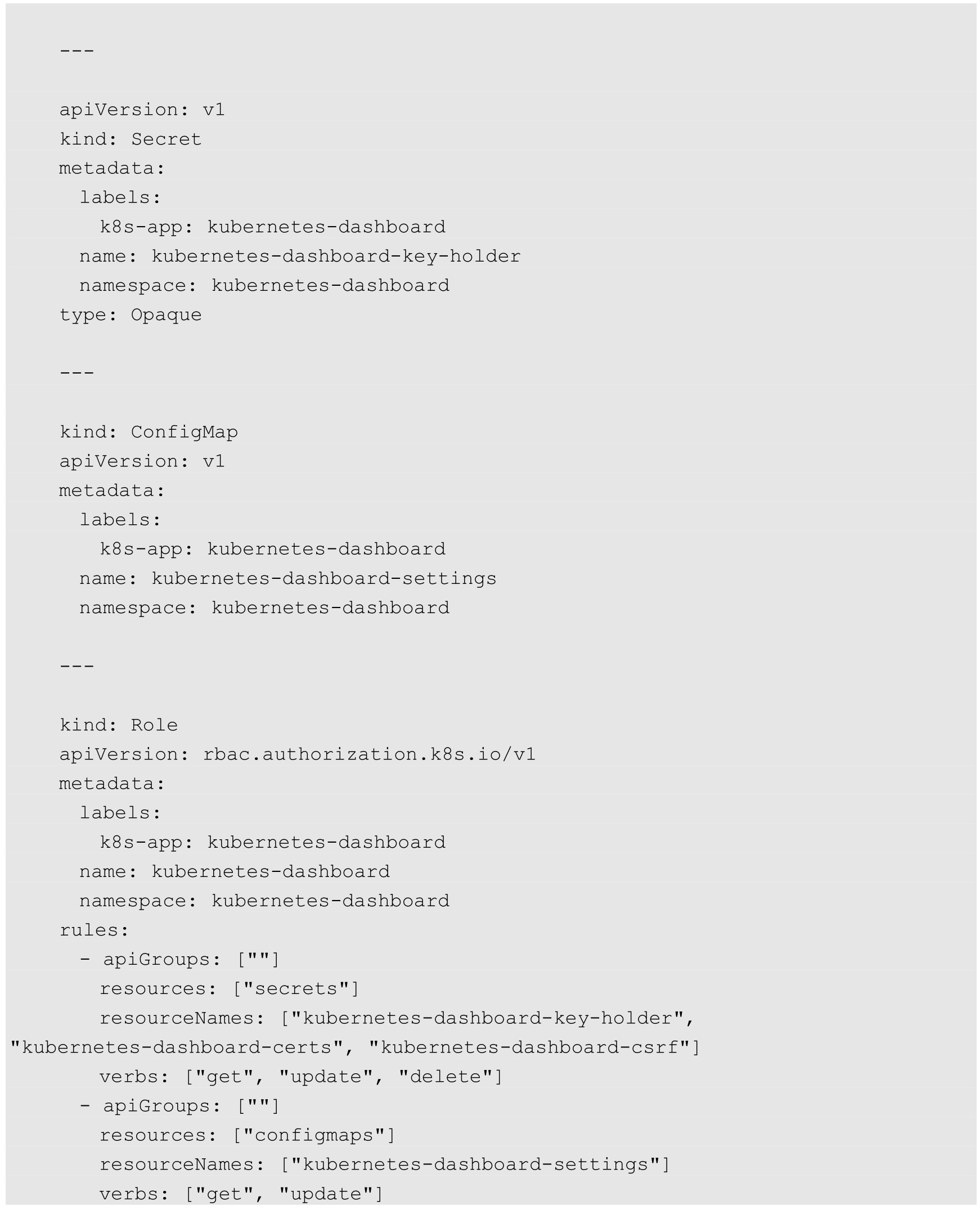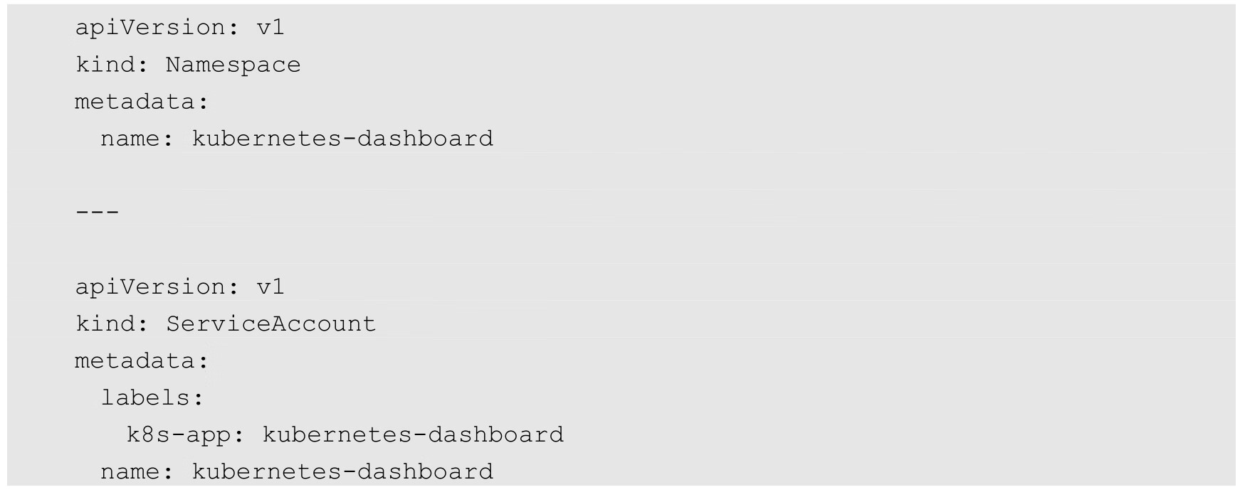 我们可以使用官方GitHub仓库提供的YAML文件一键部署kubernetes-dashboard。该配置文件的内容如下,其中包含kubernetes-dashboard所需的RBAC、Deployment和Service等资源的定义: