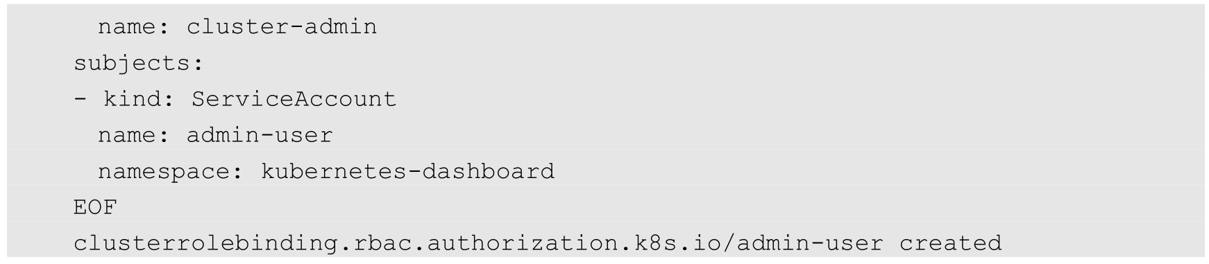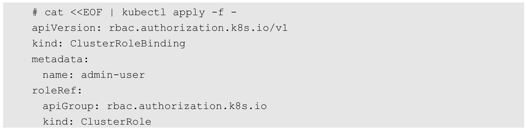 然后,为用户admin-user授予cluster-admin的集群管理员权限: