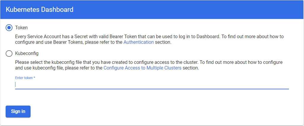 首次访问Kubernetes Dashboard页面时需要登录,如图10.20所示。