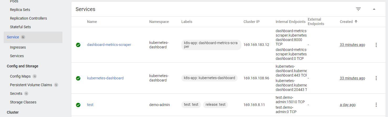 通过单击左侧的菜单项,可以过滤Workloads、Service、Config and Storage、Cluster、CRD等各类资源对象的列表和详细信息。例如查看Service列表,页面如图10.22所示。