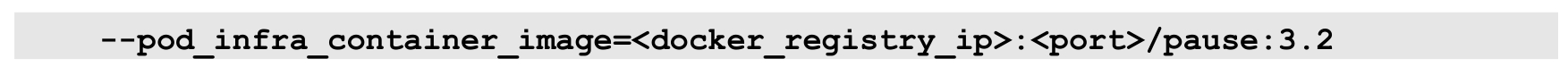 (2)如果Kubernetes集群在内网环境中无法访问gcr.io网站,则可以先通过一台能够访问gcr.io的机器下载pause镜像,将pause镜像导出后,再导入内网的Docker私有镜像库,并在kubelet的启动参数中加上--pod_infra_container_image,配置如下: