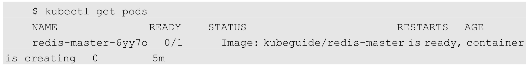 运行kubectl create-f redis-master-controller.yaml成功,但在查看Pod时,发现其总是无法处于运行状态。通过kubectl get pods命令可以看到:
