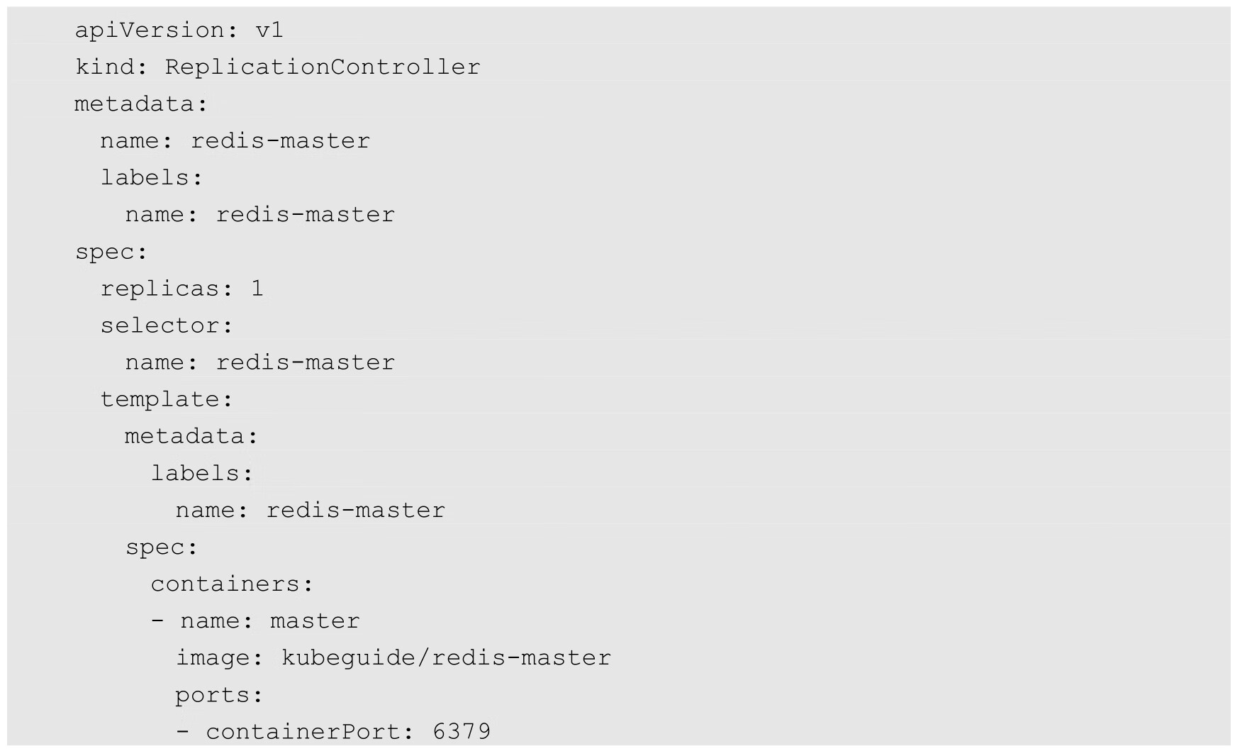 以redis-master为例,使用如下配置文件redis-master-controller.yaml创建RC和Pod: