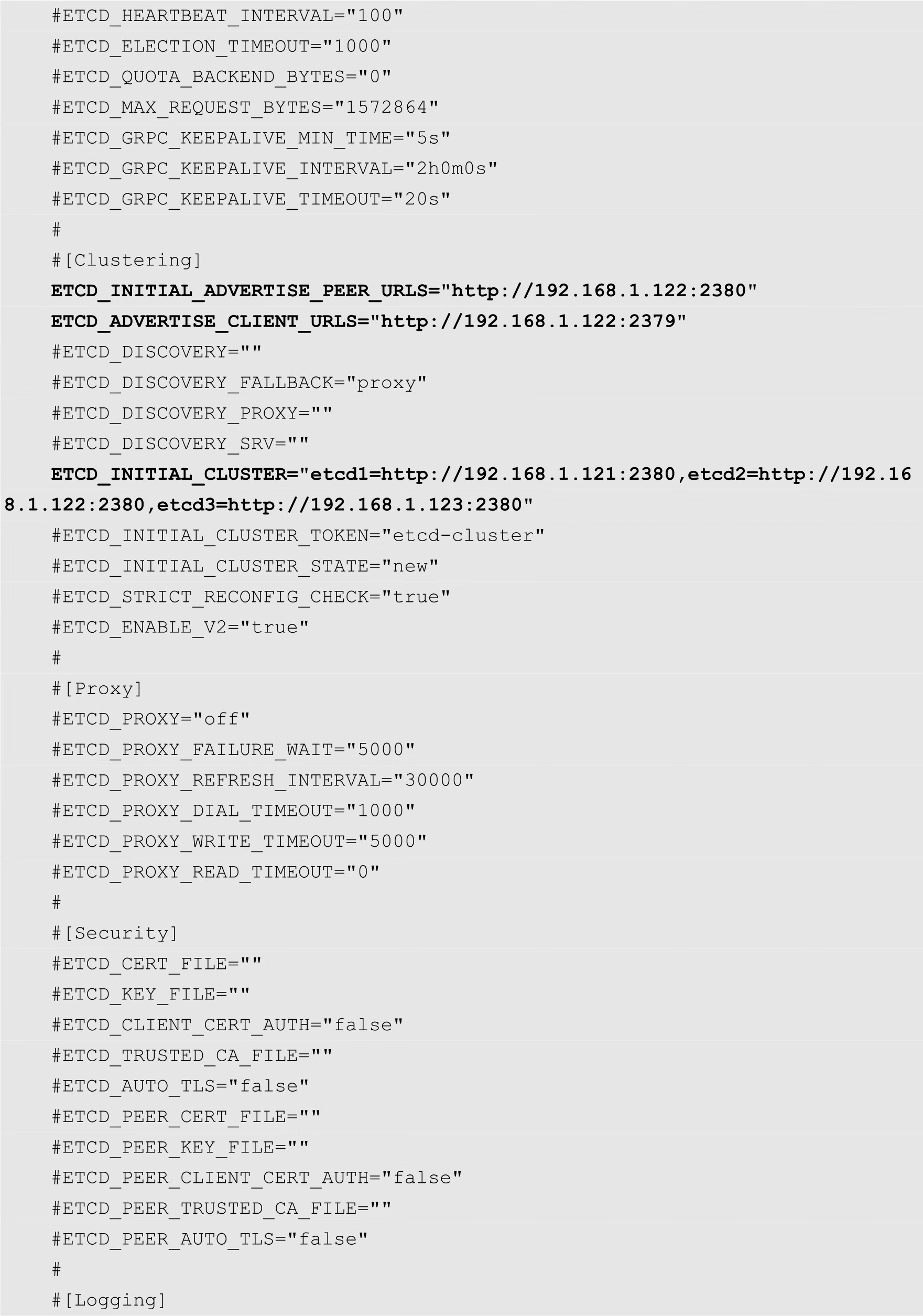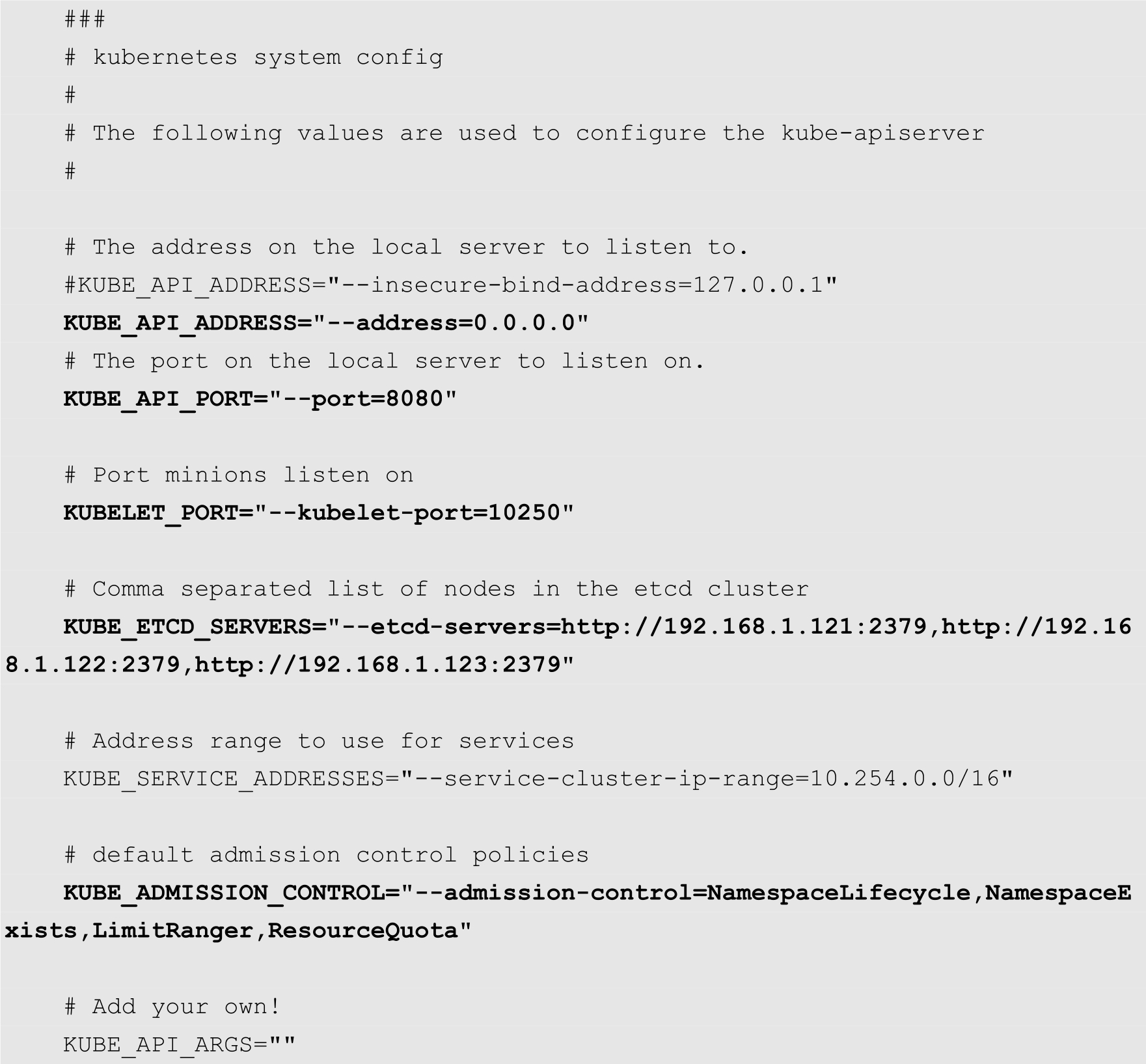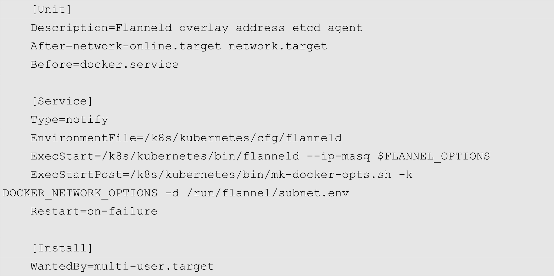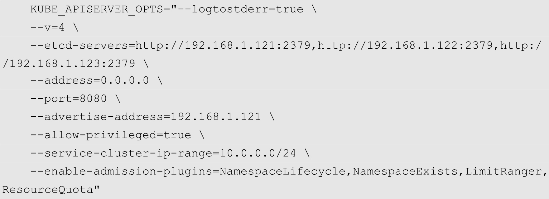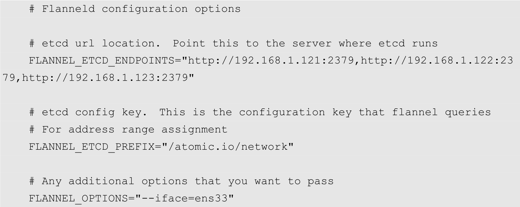 FLANNEL_OPTIONS="--etcd-endpoints=http://192.168.1.121:2379,http://192.16 8.1.122:2379,http://192.168.1.123:2379"