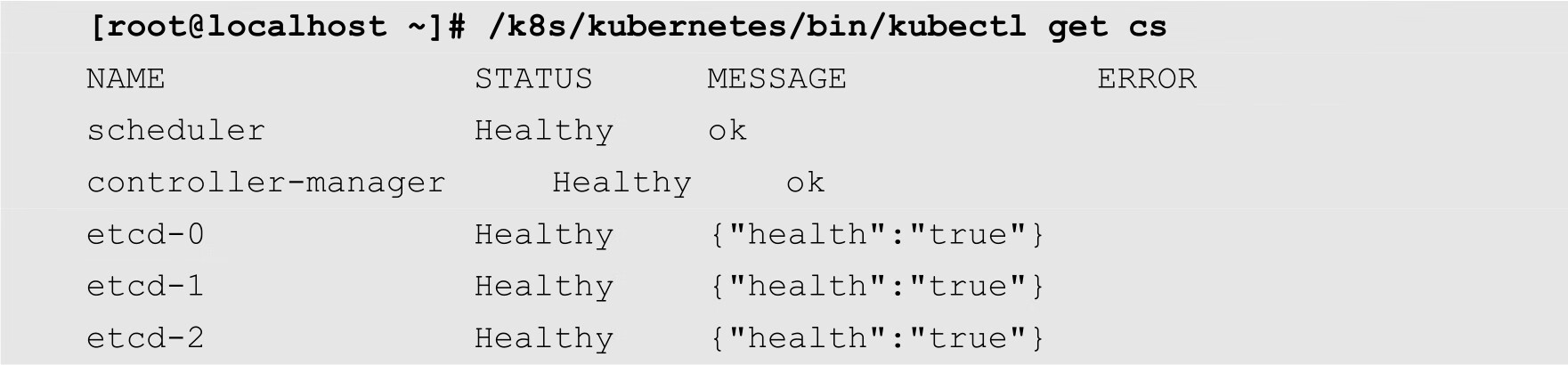 [root@localhost ~]# systemctl start kube-apiserver [root@localhost ~]# systemctl start kube-controller-manager [root@localhost ~]# systemctl start kube-scheduler