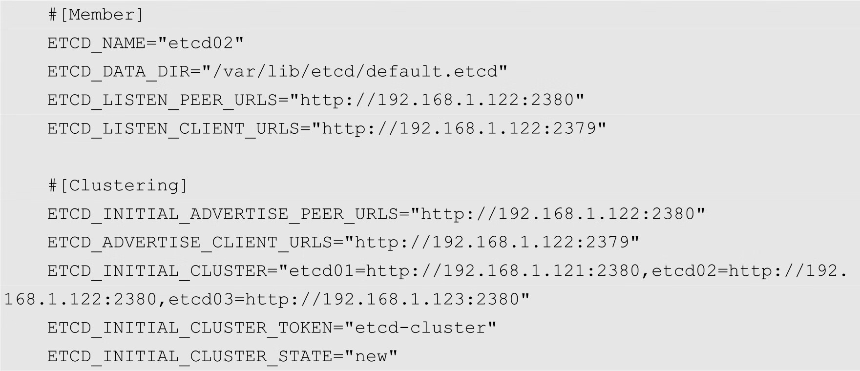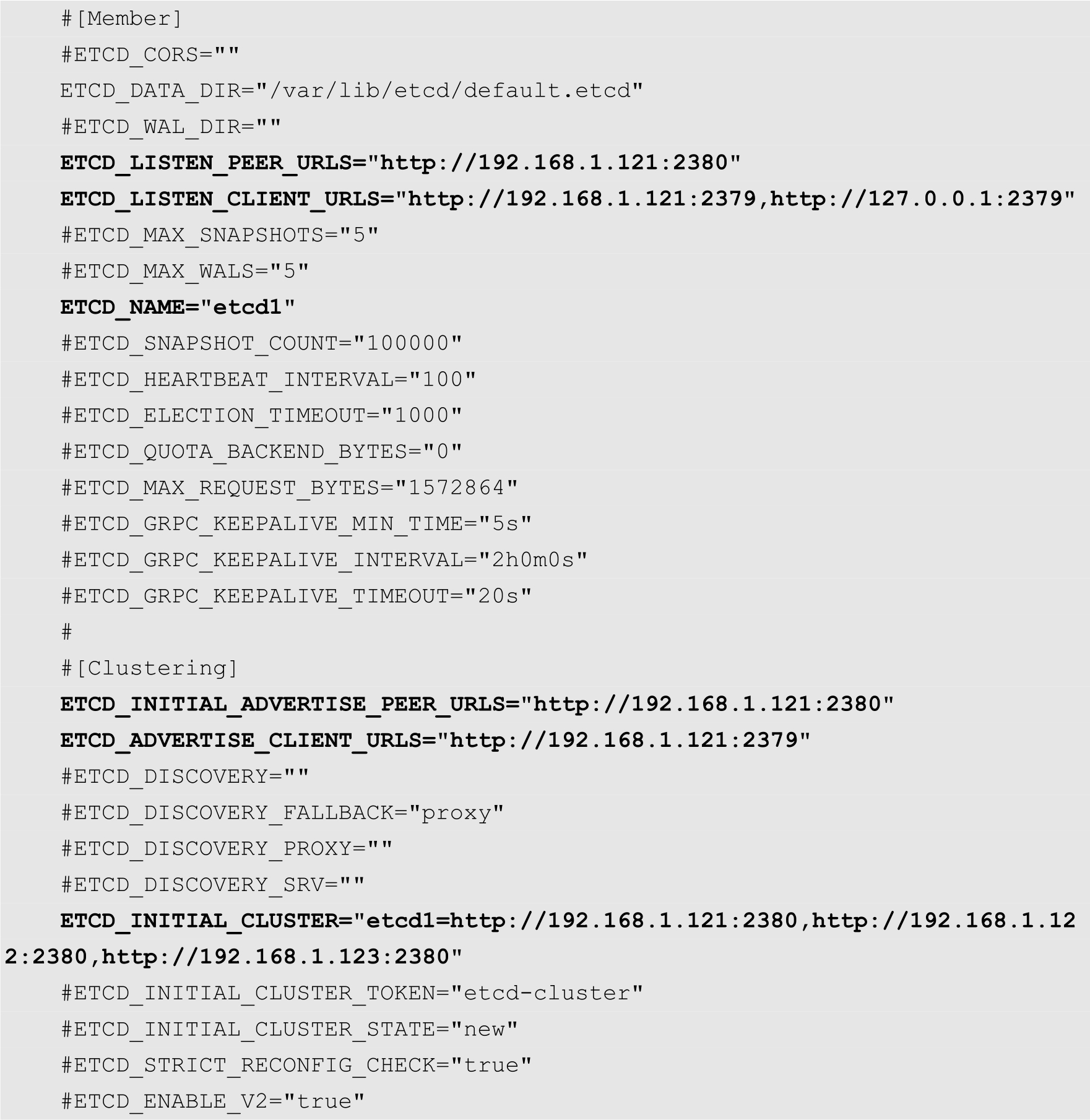 在本例中,节点的IP地址为192.168.1.121,默认的端口为2380。用户可以通过该选项同时指定多个URL,各URL之间通过逗号隔开。