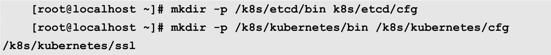 在本例中,我们计划将Kubernetes安装在/k8s目录中,所以使用以下命令分别创建几个相关的目录: