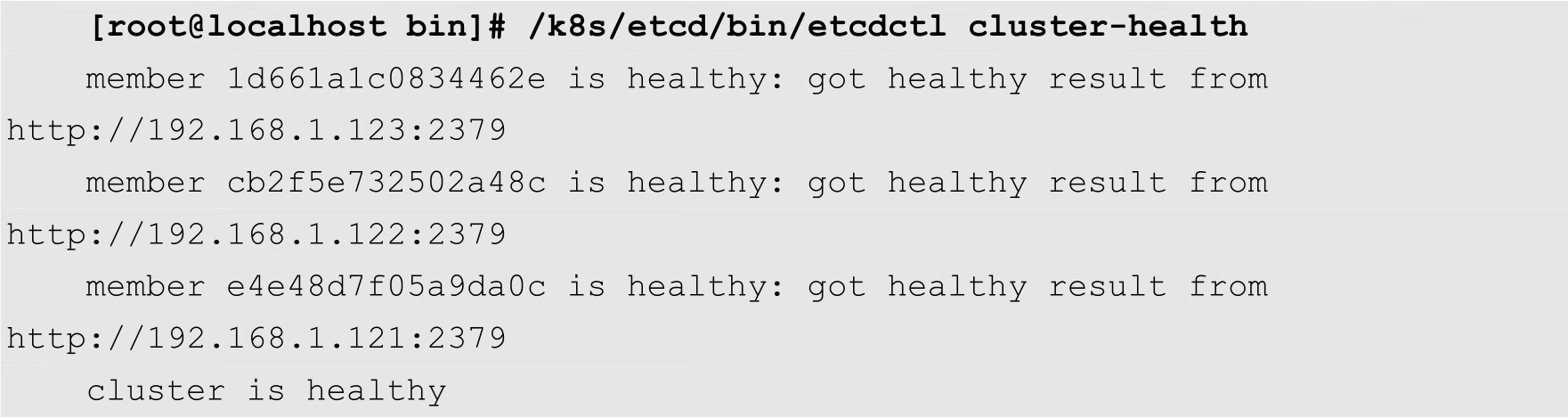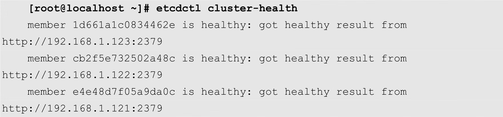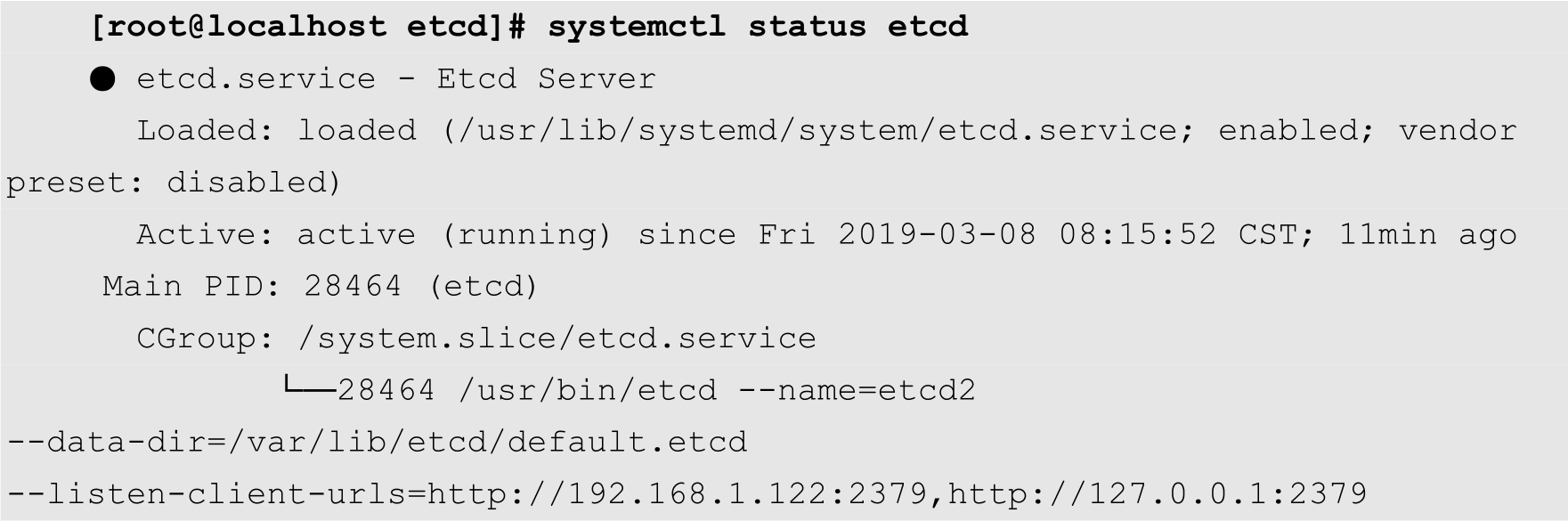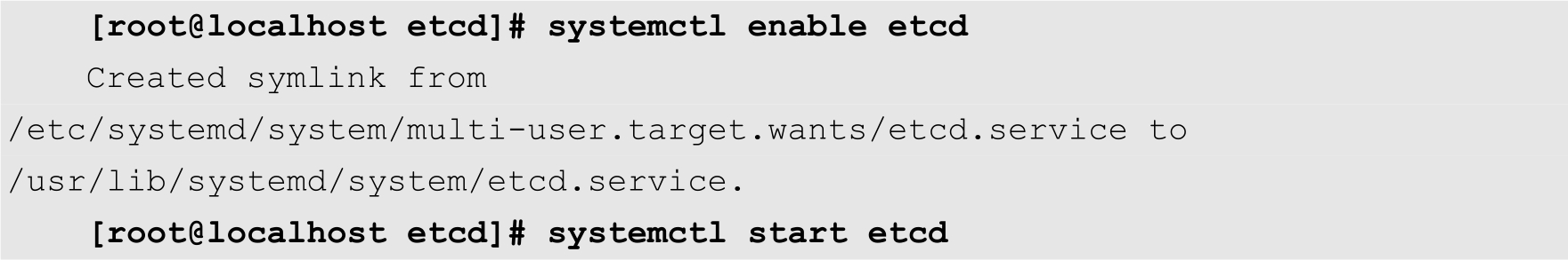 [root@localhost ~]# systemctl enable etcd [root@localhost ~]# systemctl start etcd