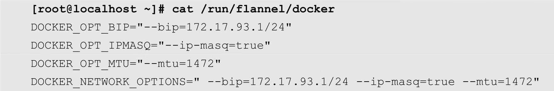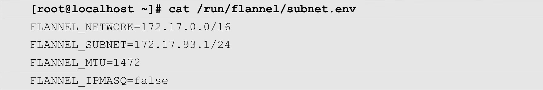 此外,flannel还生成了2个配置文件,分别是/run/flannel/subnet.env和/run/flannel/docker。其中subnet.env的内容如下所示: