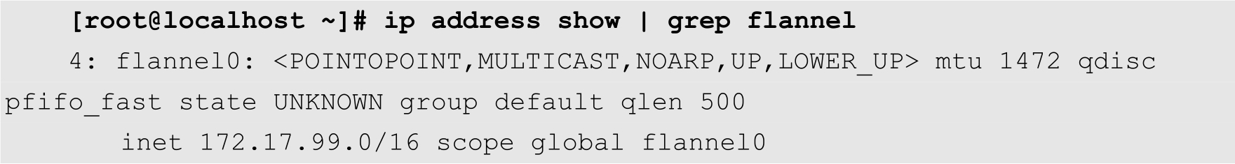 [root@localhost ~]# systemctl enable flanneld [root@localhost ~]# systemctl start flanneld