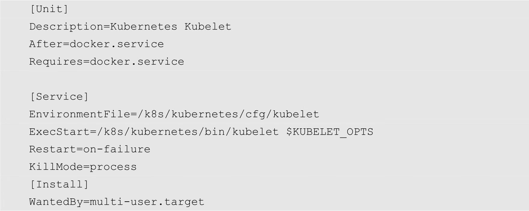接着创建kubelet系统服务单元文件,如下所示: