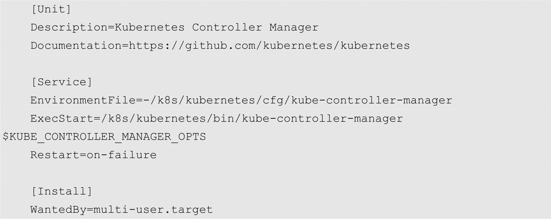 创建kube-controller-manager系统服务单元文件/lib/systemd/system/kube-controller-manager.service,内容如下;