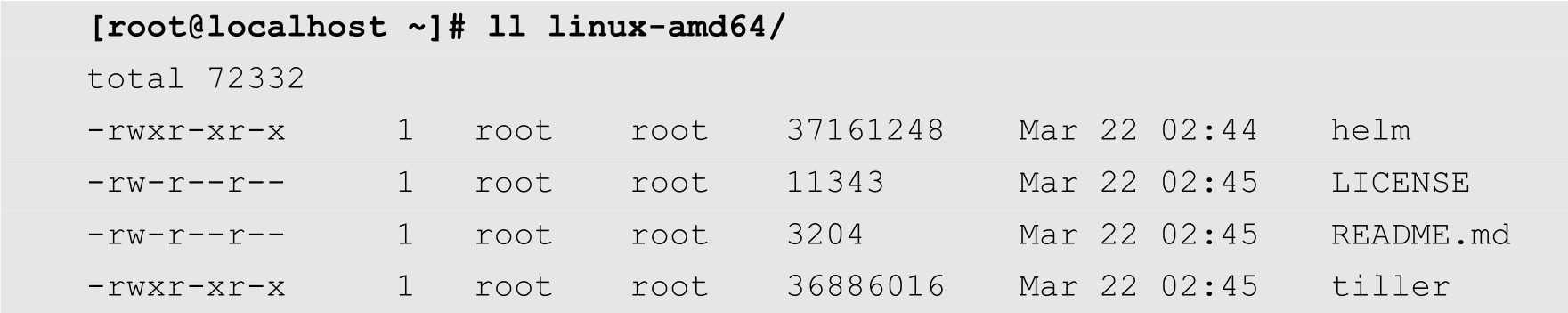 在上面的文件列表中,helm即我们所需要的客户端,tiller为Helm的服务器端。