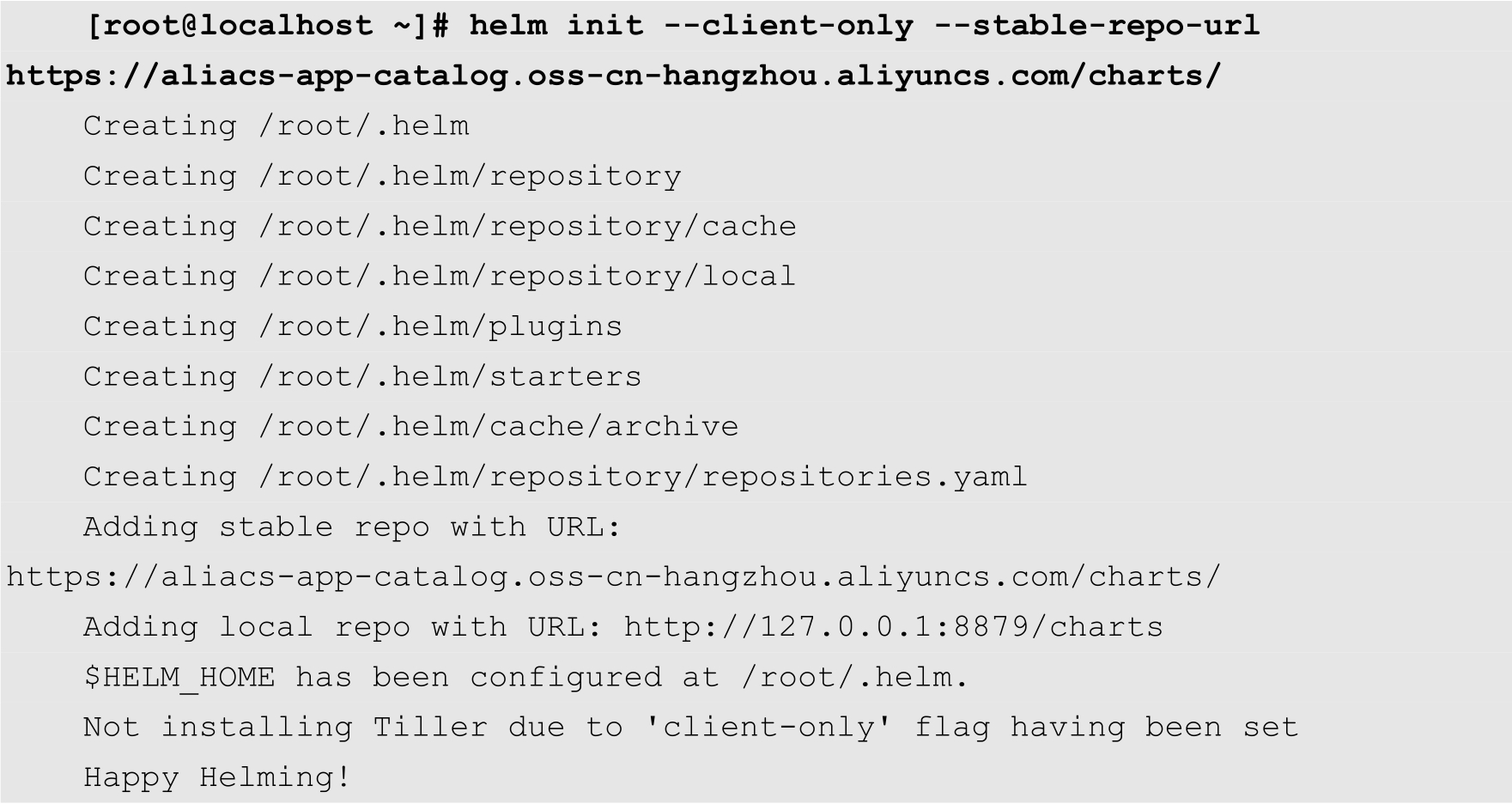 首先执行以下命令创建helm客户端相关配置文件以及$HELM_HOME环境变量: