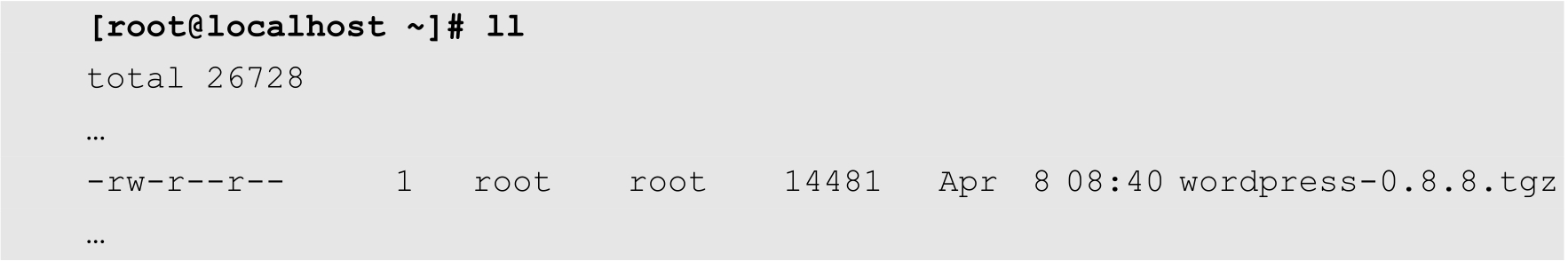 [root@localhost ~]# tar -zxvf wordpress-0.8.8.tgz