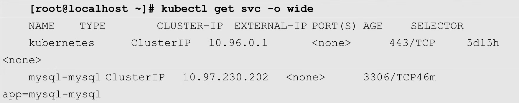 从上面的输出结果可知,当前集群中已经自动创建了一个名为mysql-mysql的Service,并且其SELECTOR为mysql-mysql。
