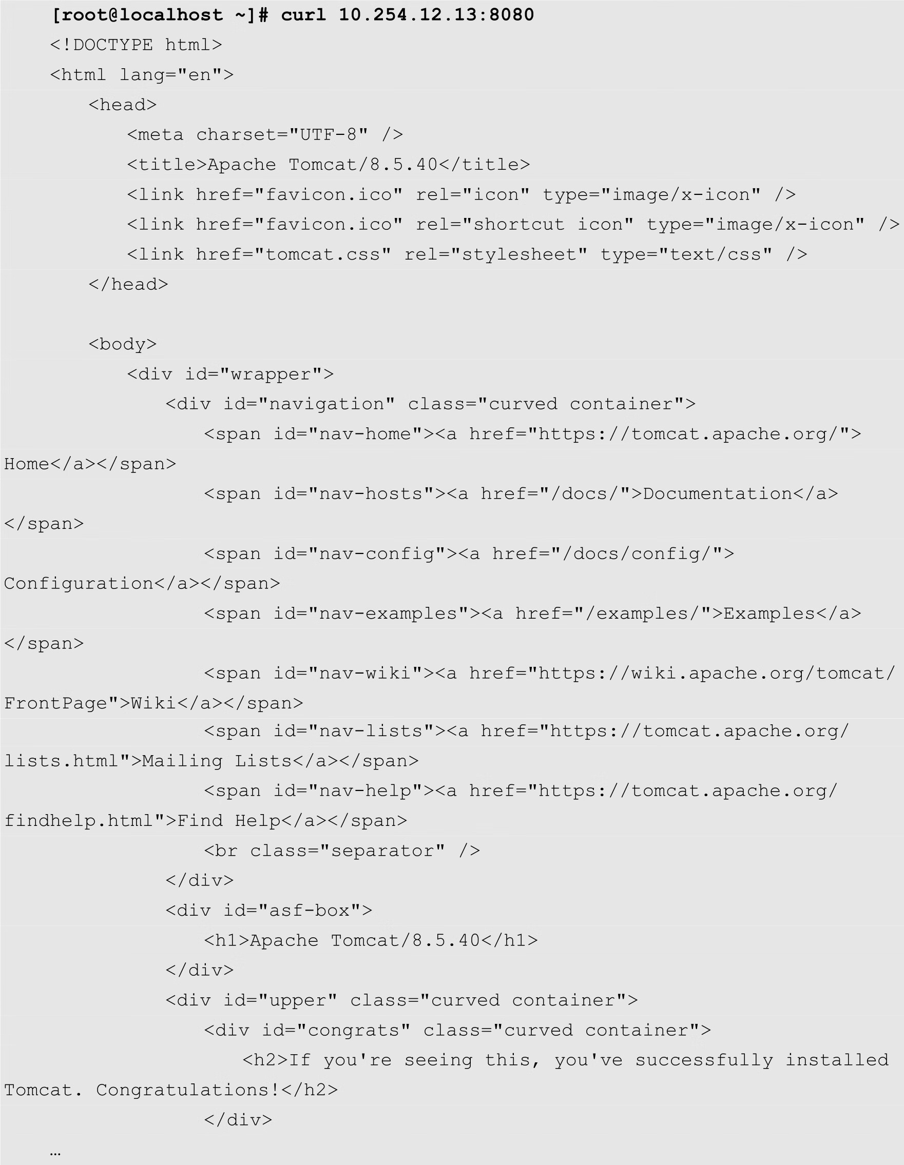 以上的输出结果正是Tomcat的默认输出结果,这表明Tomcat已可被正常访问。