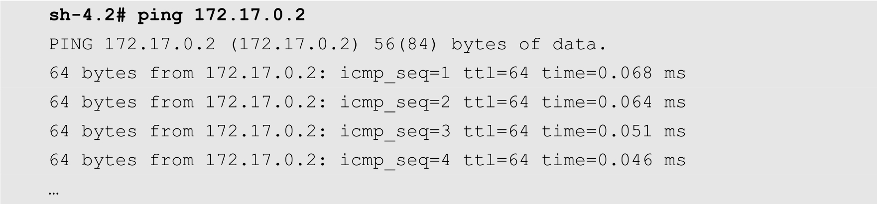 然后通过ping命令测试是否可以访问172.17.0.2的Pod,执行结果如下:
