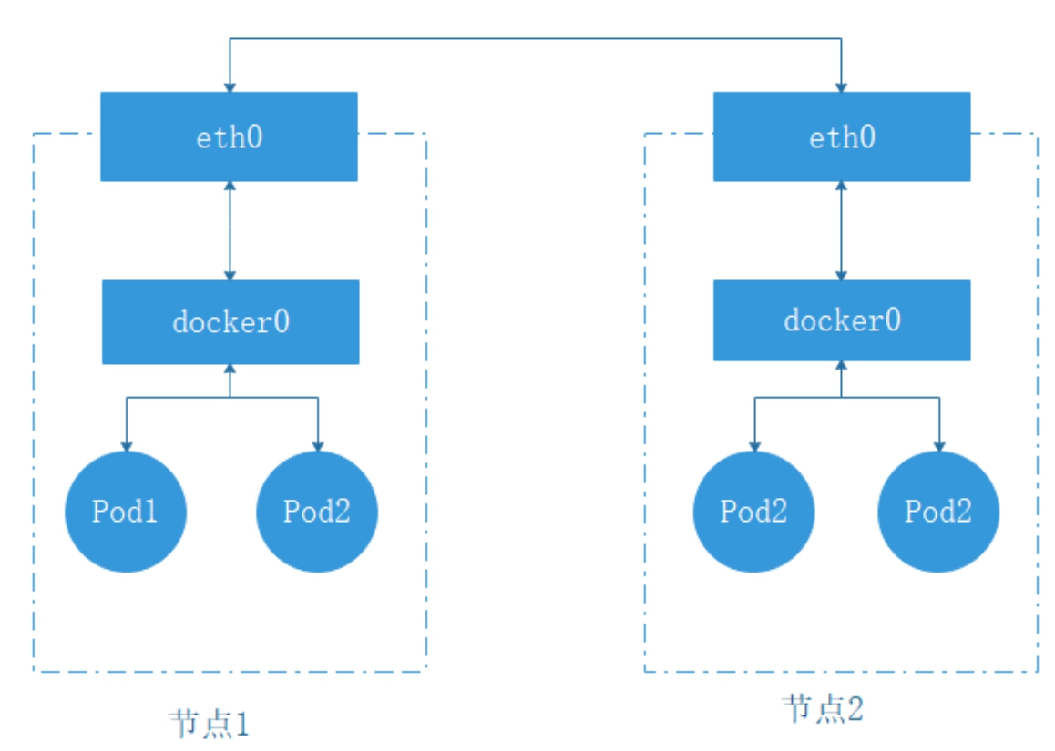 接下来,再讨论一下Pod之间的通信。Pod之间的网络通信主要有两种情况,一种是同一个节点上的不同Pod之间的通信,另外一种情况是不同节点上的Pod之间的通信。