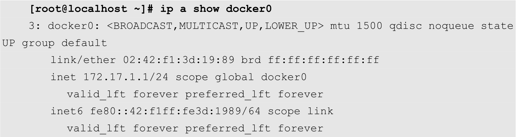 [root@localhost ~]# ip addr add 172.17.1.1/24 dev docker0