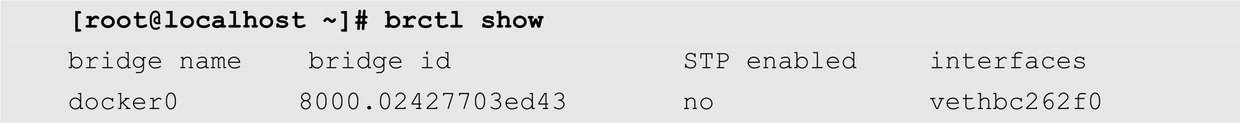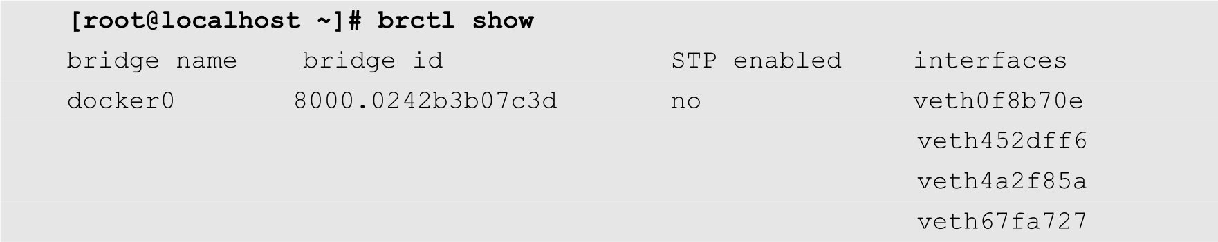 brctl命令则可以将网桥的信息显示出来,如下所示: