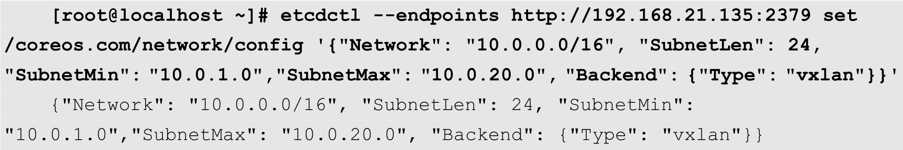 然后在Master节点上执行以下命令,在etcd中配置Flannel的网络信息: