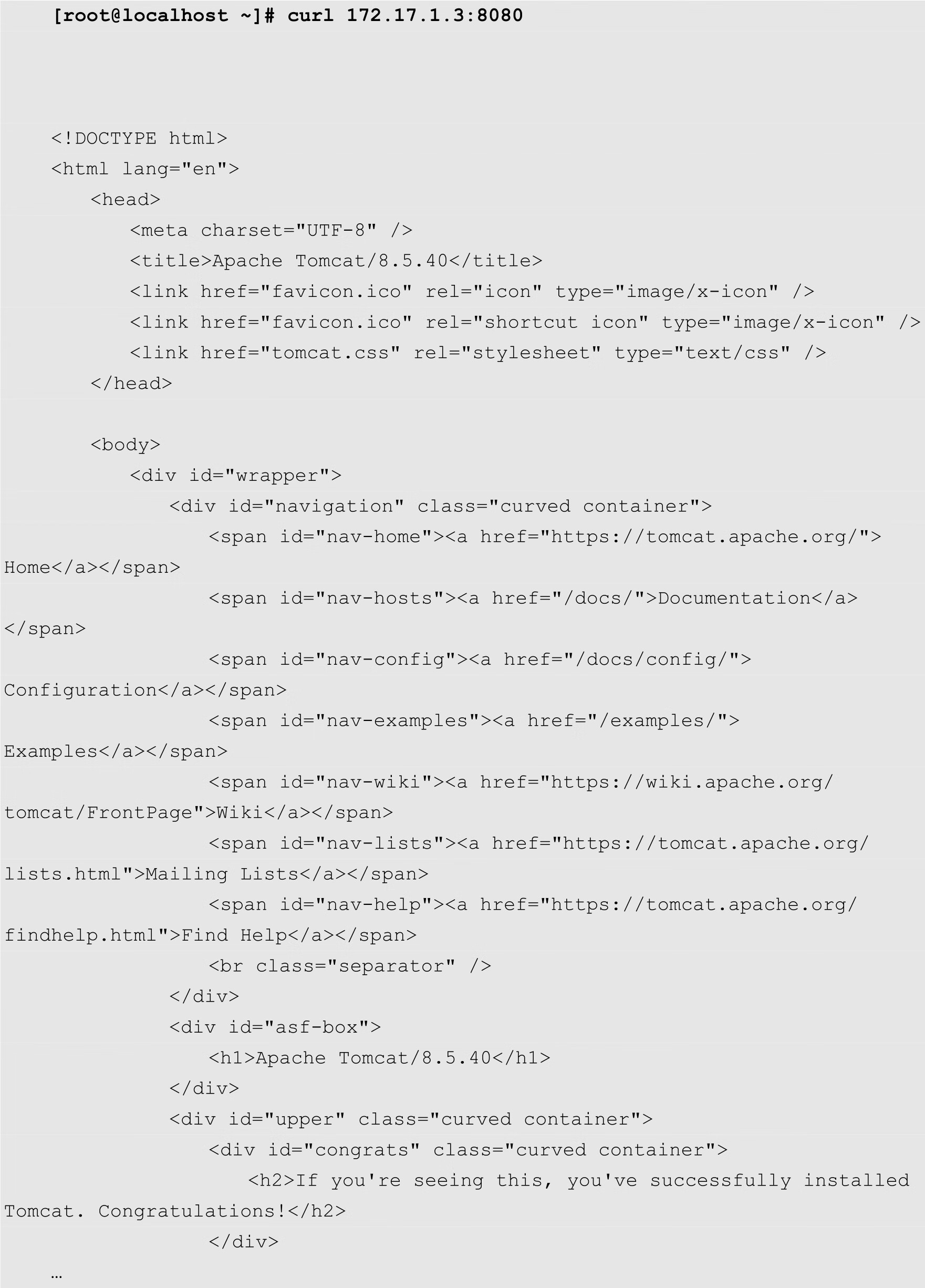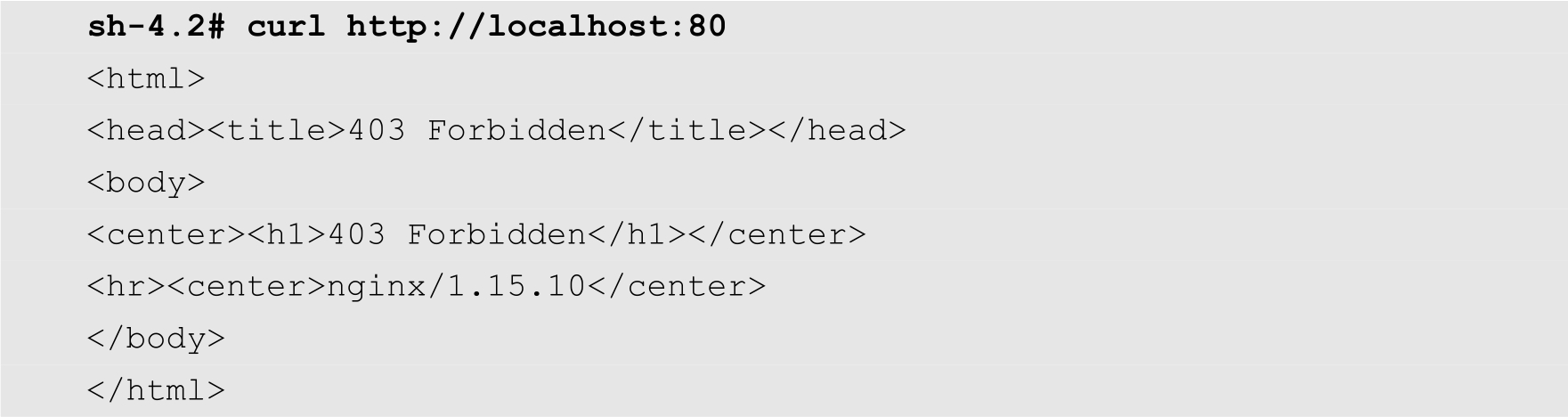 前面已经介绍过,curl命令是一个功能强大的HTTP客户端工具。在上面的例子中,通过该命令访问nginx-container的80端口。可以发现,上面的输出代码正是Nginx的输出结果。从上面的例子可知,用户可以在同一个Pod的容器中,通过localhost和端口来直接访问另外一个容器。