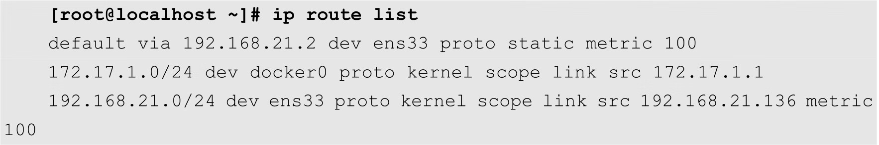 [root@localhost ~]# ip route add 172.17.1.0/24 via 192.168.21.136