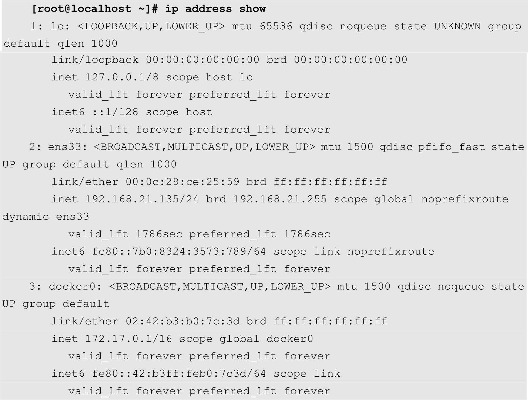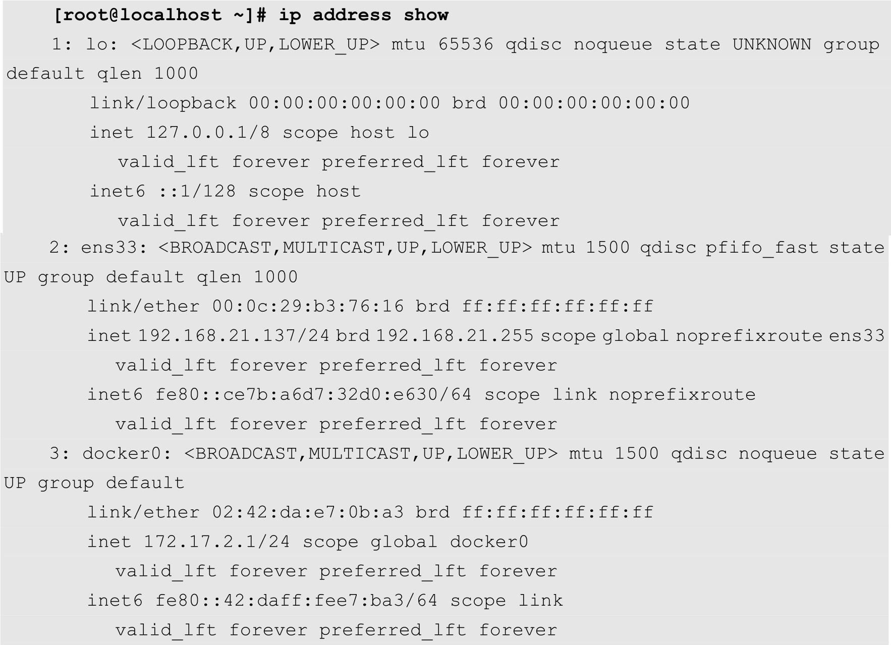 [root@localhost ~]# ip addr delete 172.17.0.1/16 dev docker0