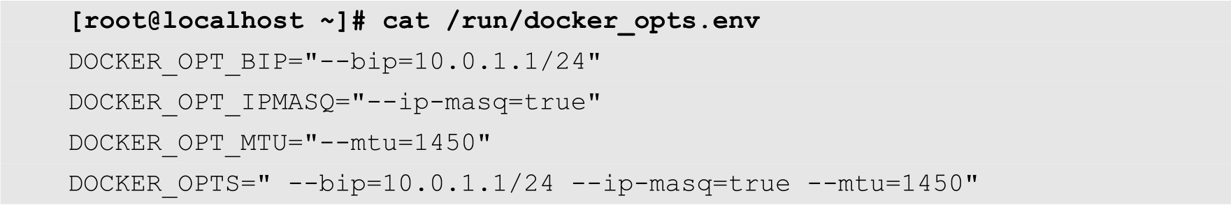默认情况下,生成的Docker启动参数位于/run目录中,其名称为docker_opts.env,代码如下: