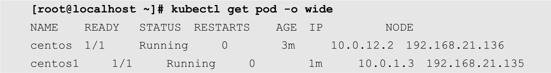 从上面的输出结果可知,这2个Pod分别在192.168.21.135和192.168.21.136这两个节点上,其IP地址分别为10.0.1.3和10.0.12.2。