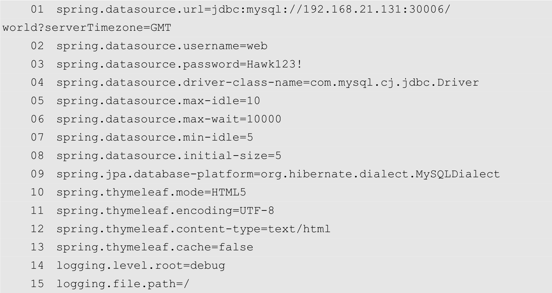 修改application.properties文件的内容,将其中数据库地址中的IP地址修改为node1的IP地址,端口为nodePort的值,用户名和密码分别为前面所创建的值,如下所示: