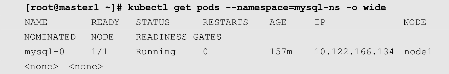从上面的输出结果可知,MySQL所在的Pod位于名称为node1的节点上。