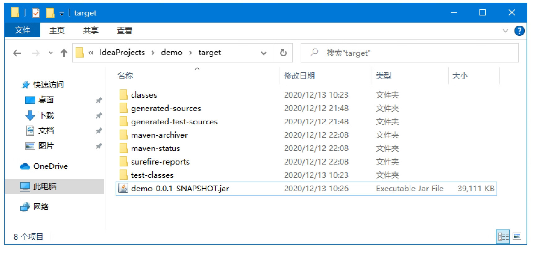 打包生成的jar文件位于项目目录中的target目录中,如图11-3所示。