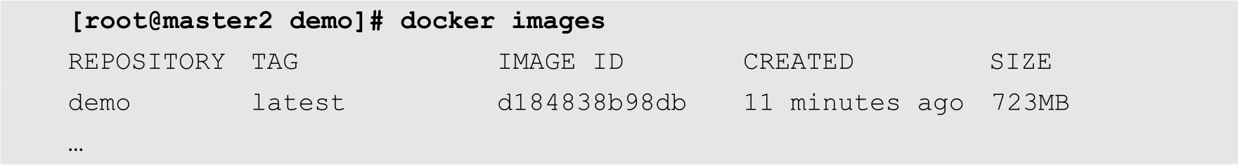 构建完成之后,查看当前系统中的镜像列表,如下所示: