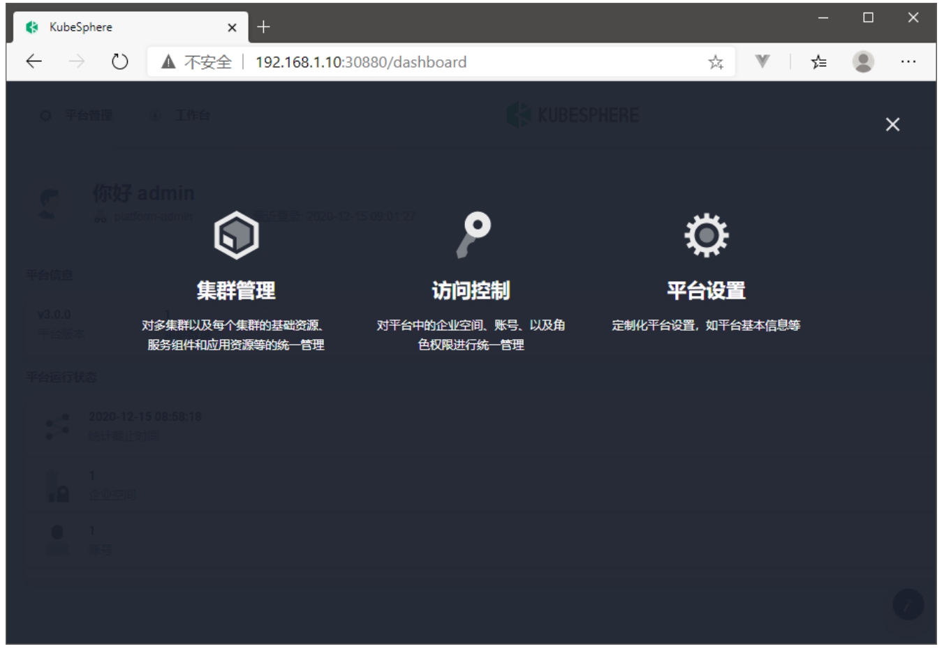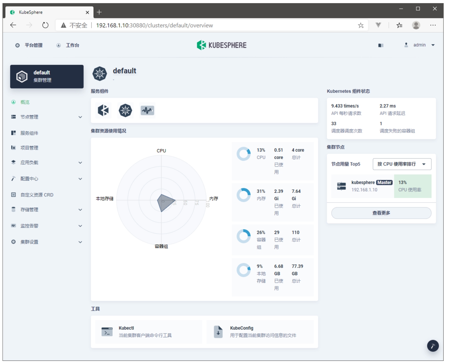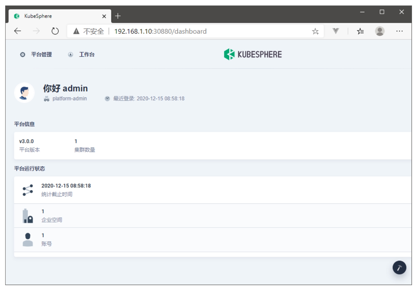 KubeSphere为用户提供了基于图形界面的集群管理方式,通过KubeSphere的控制台,用户可以查看各个服务组件的状态,管理部署、服务以及项目等资源,本节将详细介绍KubeSphere的使用方法。