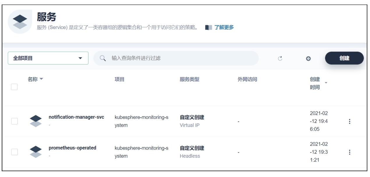 服务组件模块显示了当前KubeSphere系统中的各种服务组件的状态,如图12-7所示。