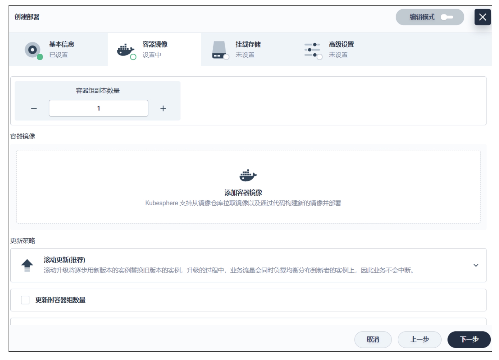 (1)打开在工作负载界面,在“部署”标签页中点击右侧的“创建”按钮。打开“创建部署”对话框,如图12-10所示。